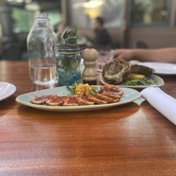 We had a fantastic meal and experience at Fumé. We had the warmed bread for a starter along with the halibut and the short rib risotto. 10/10 on all the food. The kitchen was super accommodating to my allergies request. Our server was very helpful and attentive. My toddler also loved the free kids sundae that came with her meal. The outdoor decor is super cute and we loved eating under all the patio string lights. Pricing was also very reasonable. Would absolutely try this place again.